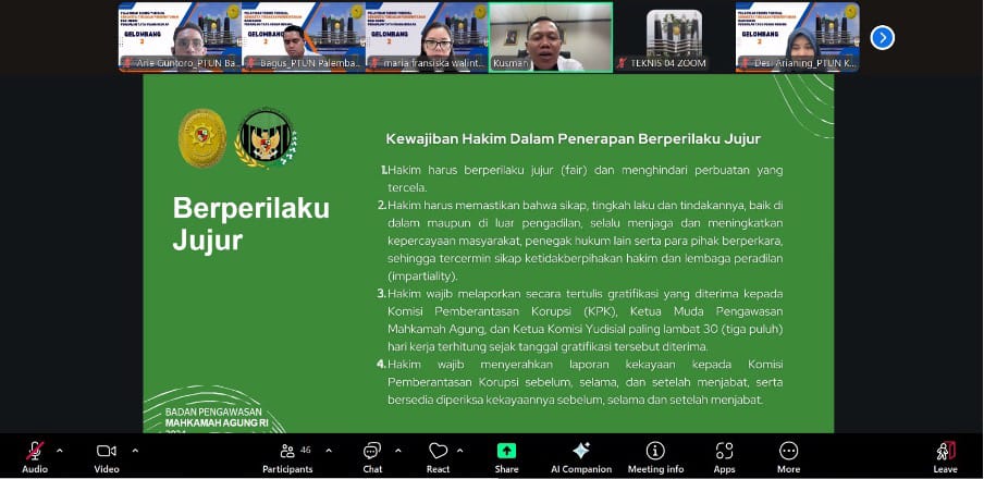 Rangkaian pelatihan yang diikuti oleh para hakim dibagi menjadi dua tahap yakni tahap pembelajaran mandiri melalu e-learning pada tanggal 8-10 Oktober 2025 dan tahap penyampaian materi secara online pada tanggal 13-16 Oktober 2025.