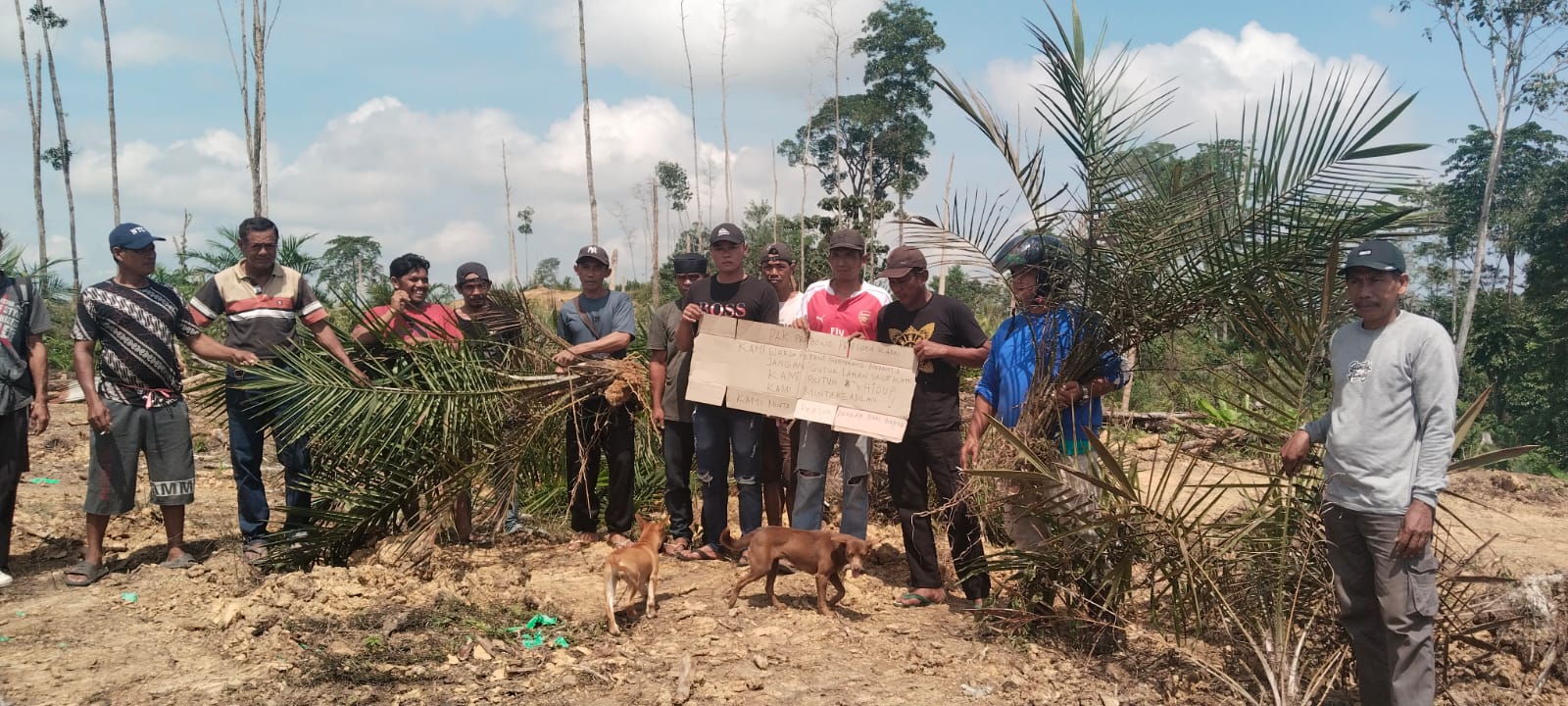Kini, warga petani yang lahannya digusur memilih bertahan. Mereka menduduki lokasi, menunggu kepastian yang tak kunjung datang. Di antara batang sawit yang tumbang, mereka menjaga satu hal yang tersisa: harapan.