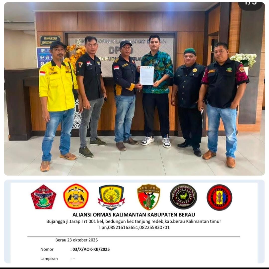 Berau, Kalimantan Timur — Sejumlah organisasi masyarakat (ormas) di Kabupaten Berau hari ini resmi menyerahkan surat permohonan kepada Dewan Perwakilan Rakyat Daerah (DPRD) Kabupaten Berau. Surat tersebut berisi permintaan agar DPRD menggelar rapat dengar pendapat (RDP) terkait dugaan pemindahan jalan Gurimbang yang menuju wilayah pesisir Kecamatan Sambaliung oleh pihak PT Berau Coal, kamis, (23/10/2025).