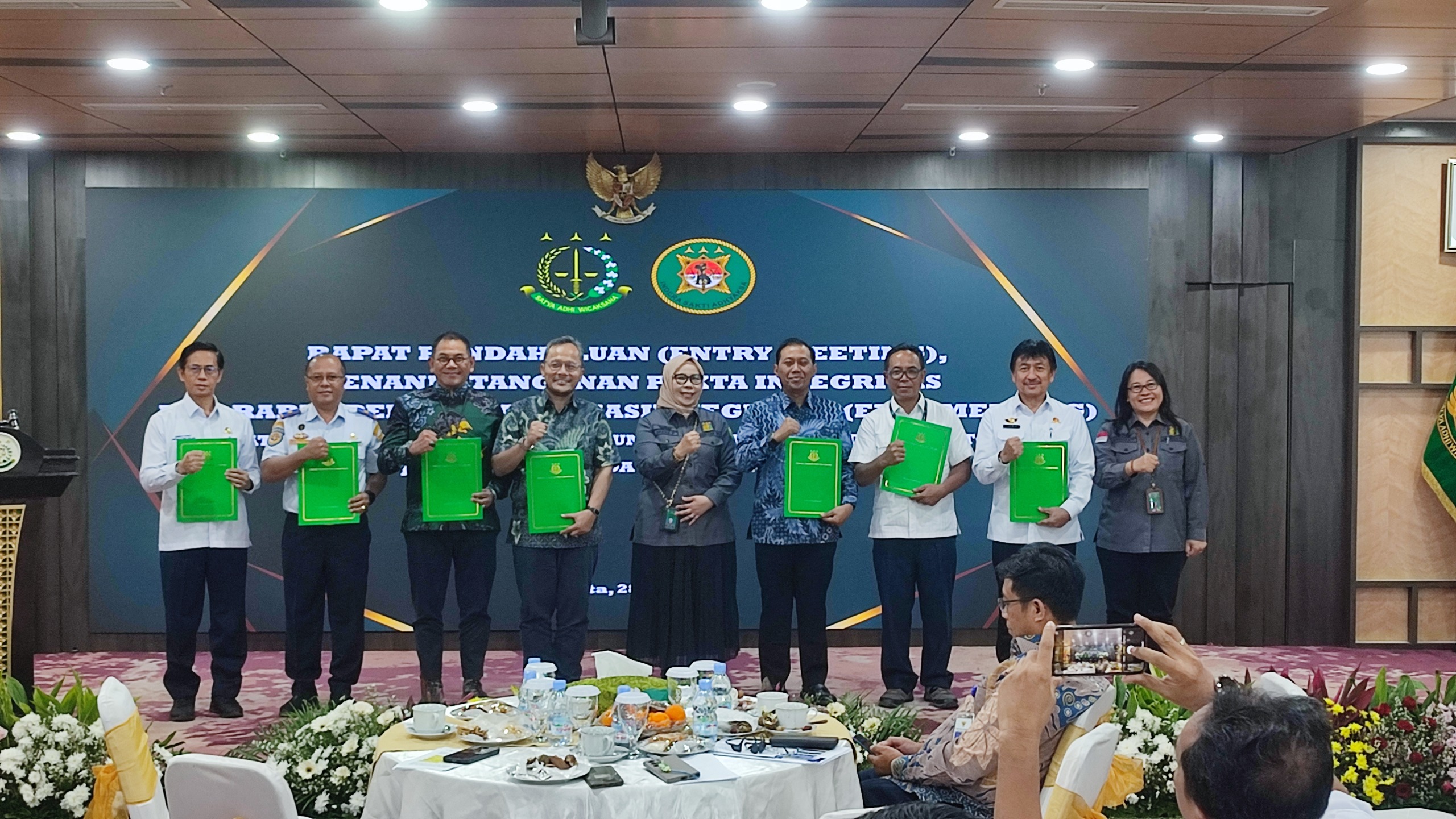 (DK) –  Kejaksaan Agung melalui Direktorat Pengamanan Pembangunan Strategis (Direktorat IV) pada Jaksa Agung Muda Bidang Intelijen (JAM INTEL) melaksanakan kegiatan Rapat Pendahuluan (Entry Meeting) dan Penandatanganan Pakta Integritas serta Penyampaian Hasil Kegiatan (Exit Meeting) pada Rabu 28 Mei 2025 di Gedung Utama Kejaksaan Agung, Jakarta.