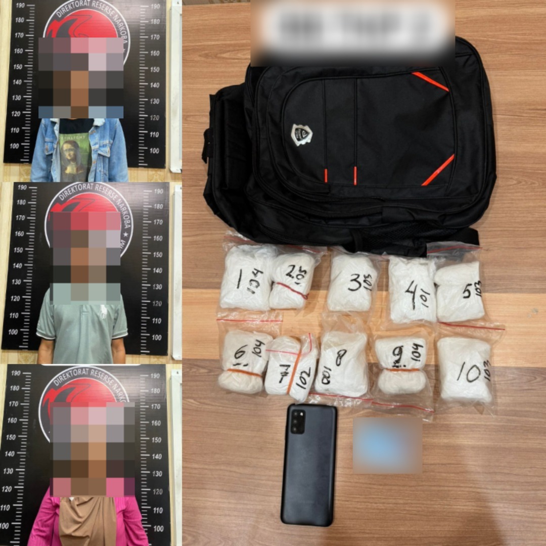 Dari tangan ketiga tersangka, Anggota dilapangan berhasil mengamankan 1 bungkus plastik klip bening yang berisi narkotika jenis sabu seberat 2,65 Gr Brutto, 1 buah tas ransel yang didalamnya terdapat lipatan uang pecahan Rp.2000 dan Rp.5000 yang didalamnya berisi narkotika jenis sabu seberat 4,58 Gr Brutto, serta 1 buah tas ransel yang didalamnya berisi 10 bungkus plastik klip bening yang didalamnya berisi narkotika jenis sabu dengan total berat 1.028 Gr Brutto.