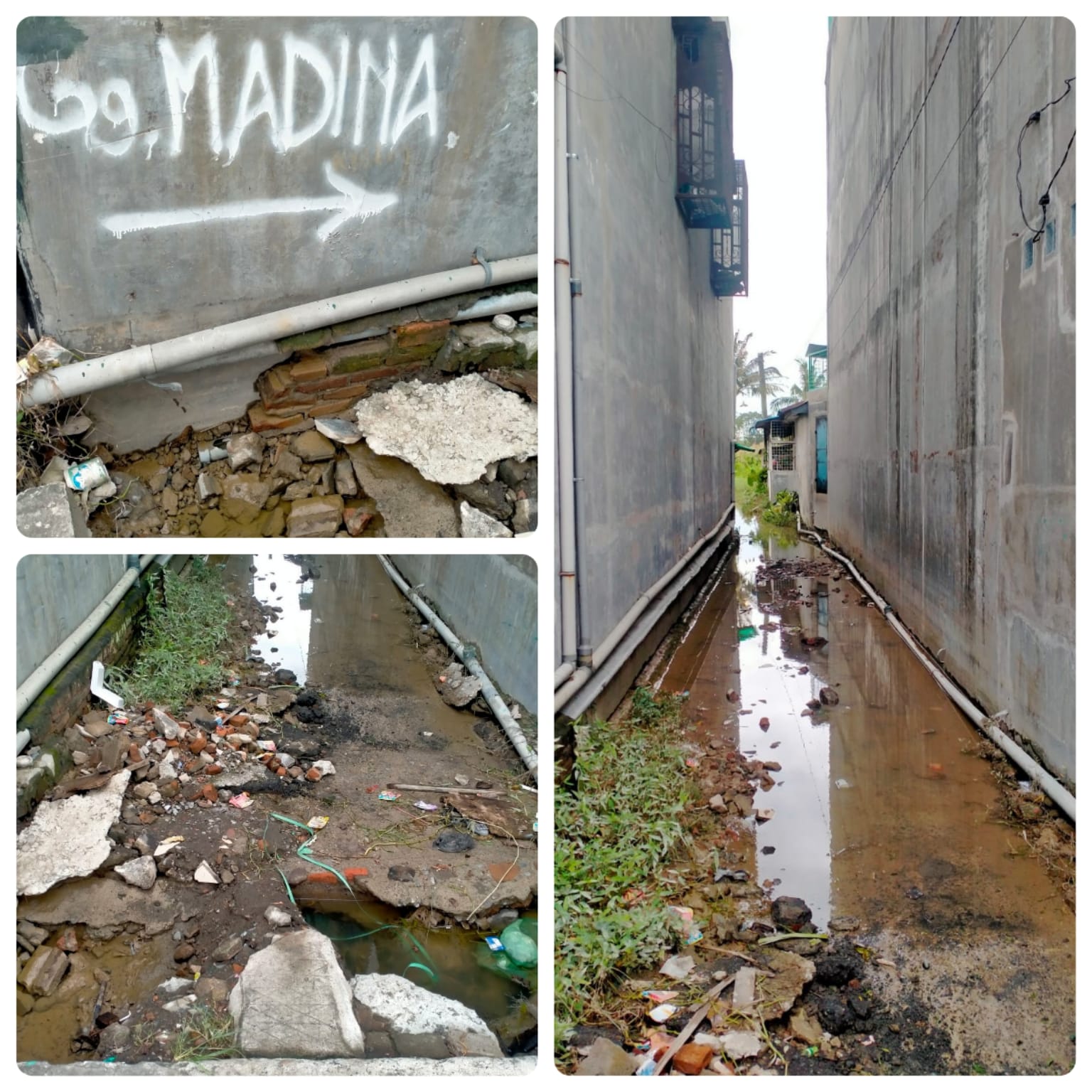Sorotan serius dari warga, Jalan Gang Madina, yang menjadi akses utama warga menuju sekolah, tempat ibadah, dan pusat ekonomi, rusak parah. badan jalan berlubang, dan saat hujan turun berubah menyerupai selokan. Drainase tak berfungsi optimal, air parit meluap hingga masuk ke rumah warga.