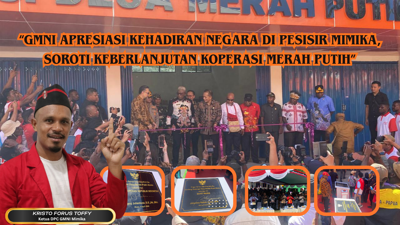 Timika,- Ketua Dewan Pimpinan Cabang Gerakan Mahasiswa Nasional Indonesia (GMNI) Kabupaten Mimika, Kristoforus Toffy, menyampaikan apresiasi atas peresmian Koperasi Merah Putih di wilayah pesisir, khususnya Kampung Atuka, Distrik Mimika Tengah. Ia menilai program tersebut sebagai langkah strategis dalam mendorong pertumbuhan ekonomi masyarakat pesisir.
