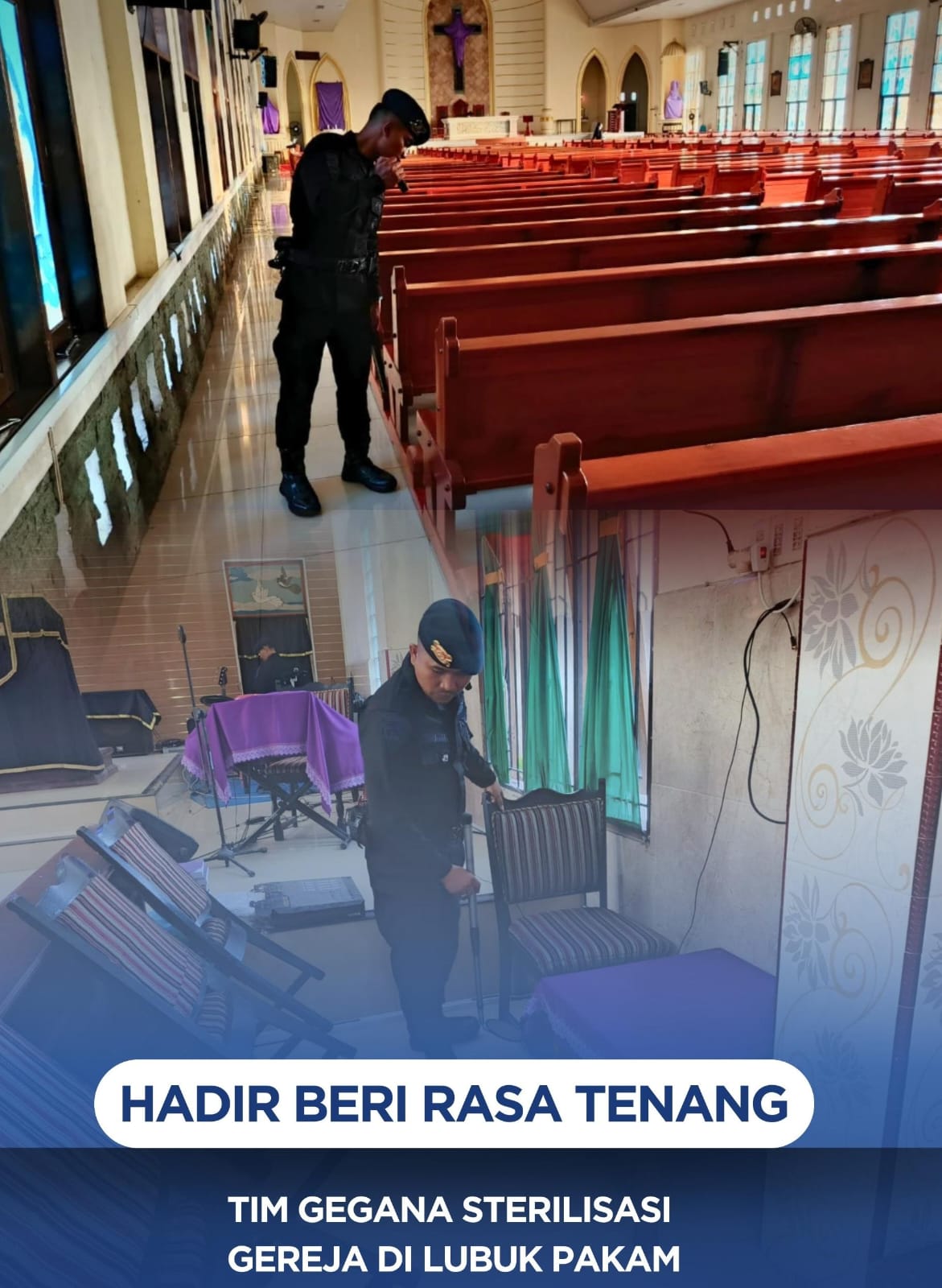 Dengan melibatkan satu tim Jibom KBR yang terdiri dari enam personel, dipimpin oleh Wakasubden IV Bantis Den Gegana, AKP Rudi, S.Sos.I. Tim bergerak menuju beberapa gereja prioritas di Lubuk Pakam, di antaranya Gereja HKBP Lubuk Pakam, Gereja Paroki Gembala yang Baik, dan GKPI Lubuk Pakam Kota.