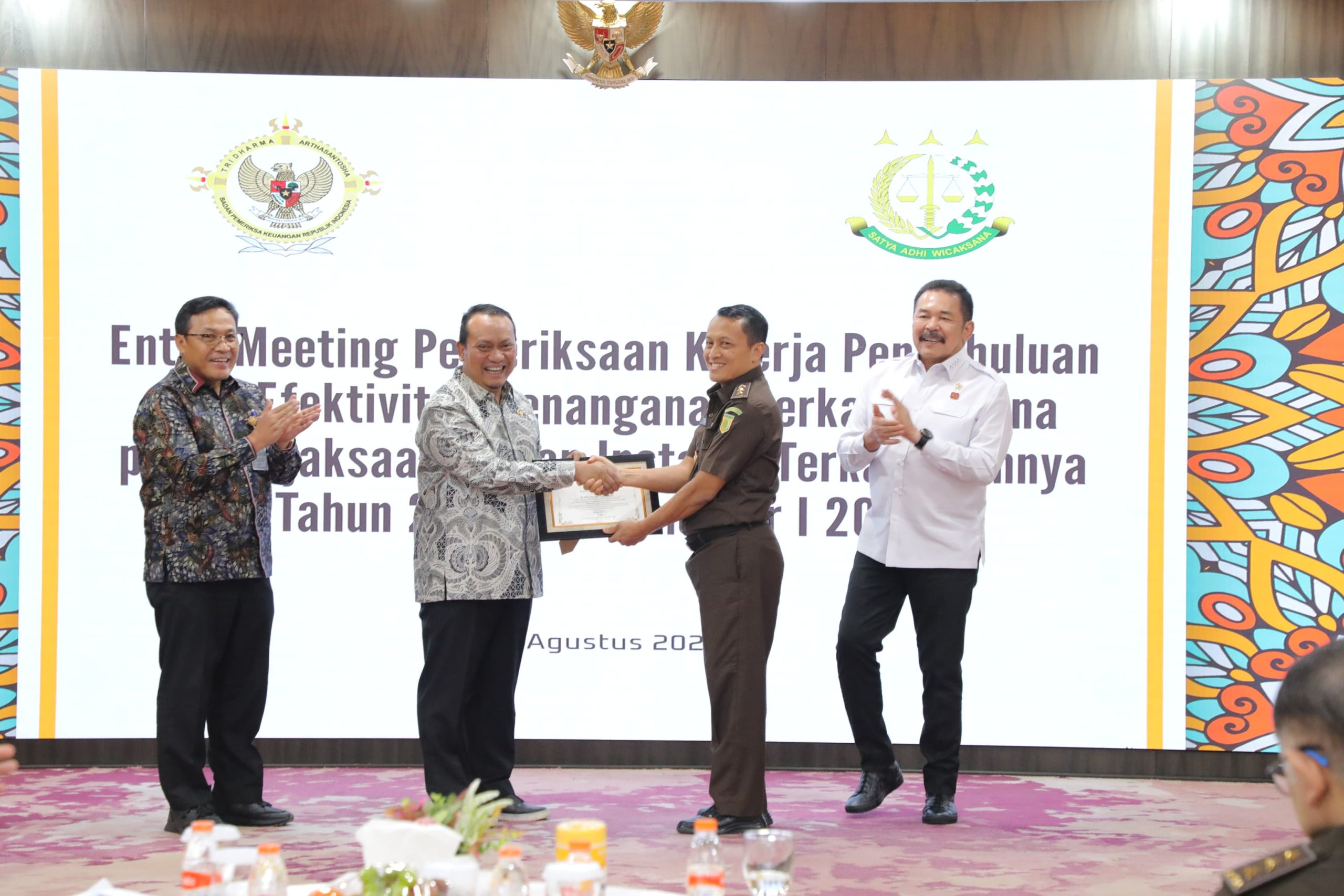 Kegiatan ini turut dihadiri oleh Plt. Wakil Jaksa Agung, Para Jaksa Agung Muda dan Kepala Badan Pemulihan Aset. Sementara itu pejabat BPK RI yang turut hadir ialah Pimpinan Keuangan Negara I pada BPK RI yakni Nyoman Adhi Suryadnyana beserta jajaran.