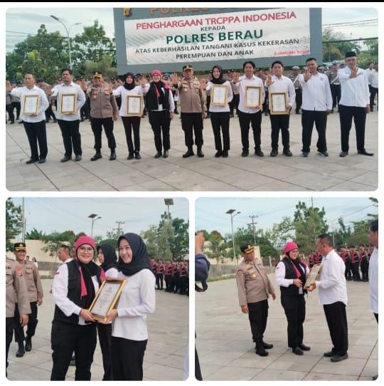 Berau — Kapolres Berau bersama Unit Pelayanan Perempuan dan Anak (PPA) Polres Berau menerima Penghargaan TRCPPA sebagai bentuk apresiasi dari masyarakat atas kinerja profesional, adil, dan berintegritas dalam penegakan hukum, khususnya dalam perlindungan kelompok rentan.