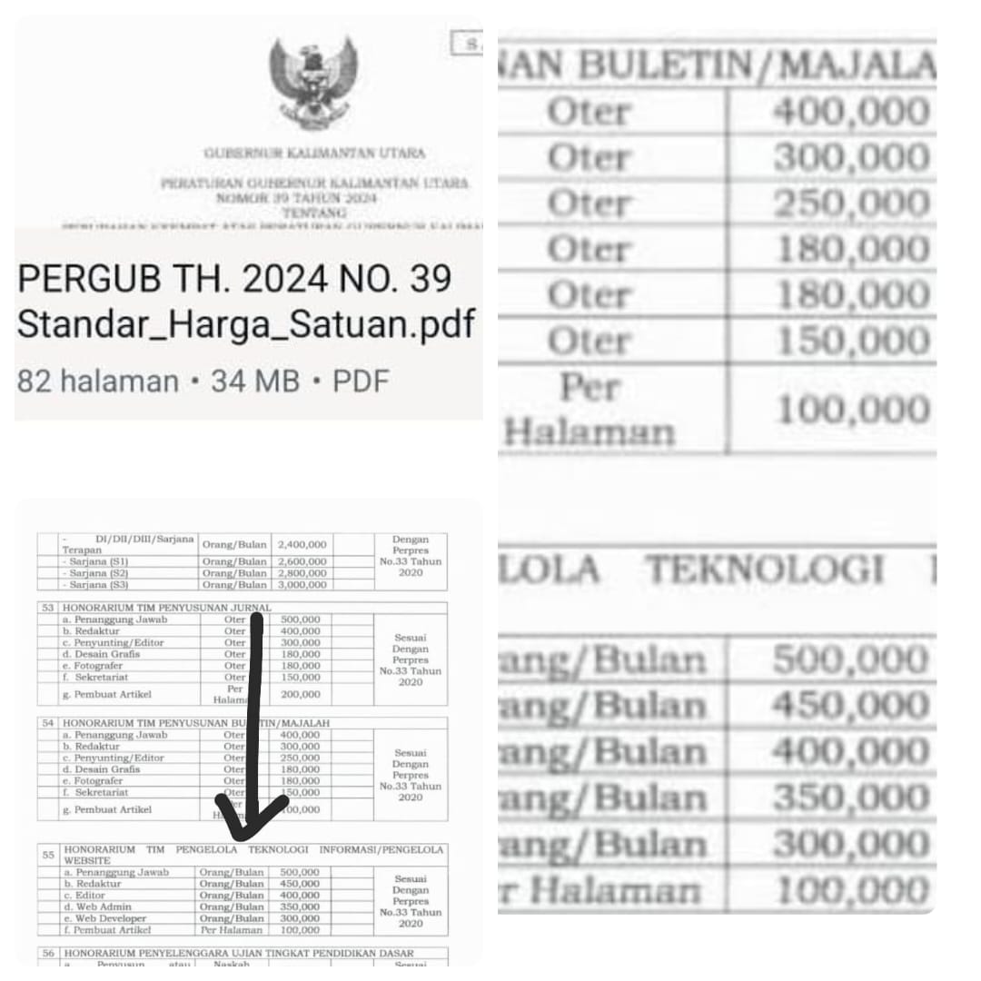 Sorotan utama dalam pemberitaan adalah adanya perbedaan signifikan antara standar biaya advertorial media pemerintah yang diatur dalam Peraturan Gubernur Kalimantan Utara Nomor 39 Tahun 2024 dengan nilai kontrak kerja sama publikasi di sejumlah OPD. Dalam regulasi tersebut, biaya advertorial ditetapkan berkisar Rp100 ribu hingga Rp500 ribu per tayang, menyesuaikan klasifikasi media dan turunannya, termasuk ketentuan perjalanan dinas aparatur sipil negara didalamnya dijelaskan.