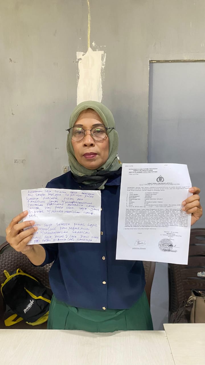 Gowa – Seorang ibu rumah tangga sekaligus Komisaris PT SSB bernama Hj. Suraedah Rahman (50), warga Jalan Pelita Raya Taeng, Kabupaten Gowa, Sulawesi Selatan, melaporkan mantan Direktur Utama PT SSB, M. Faizal, ST, ke Polda Sulsel atas dugaan tindak pidana penggelapan dana. Laporan tersebut telah teregister dalam Surat Tanda Terima Laporan Polisi Nomor: STTLP/B/567/VI/2023/SPKT/Polda Sulsel, tertanggal 26 Juni 2023.