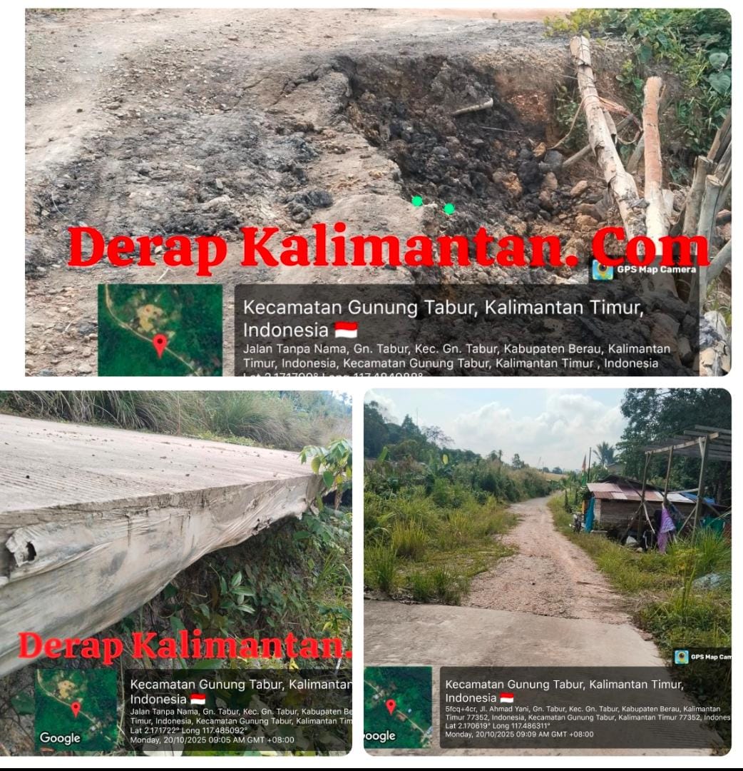 Berau, Kalimantan Timur — Proyek semenisasi di kawasan Gang Family, RT 08, Kecamatan Gunung Tabur, Kabupaten Berau, yang rampung sekitar setahun lalu, kini menuai sorotan tajam dari warga. Pekerjaan yang dinilai asal jadi itu meninggalkan persoalan serius: jalan kerap longsor dan membahayakan pengguna, Senin, (20/10/2025).
