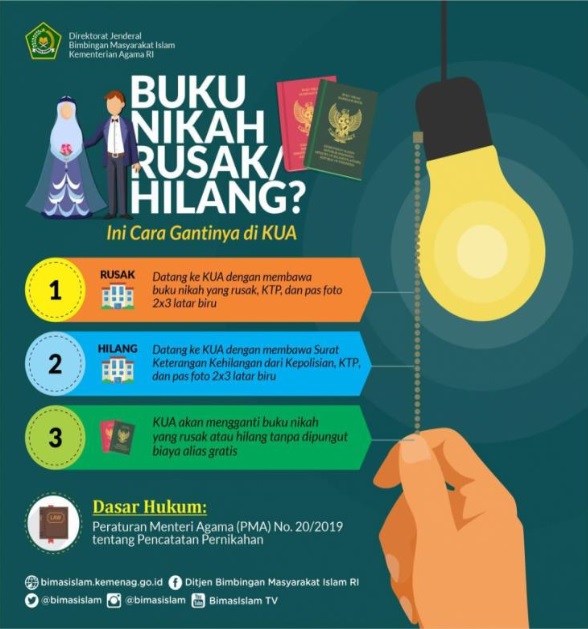 Sedangkan apabila hilang, permohonan Duplikat Buku Nikah yang hilang harus disertai dengan surat hilang dari kepolisian. Dan yang paling terpenting, menurut aturan ini, duplikat buku nikah diterbitkan hanya untuk Buku Nikah yang rusak atau hilang.