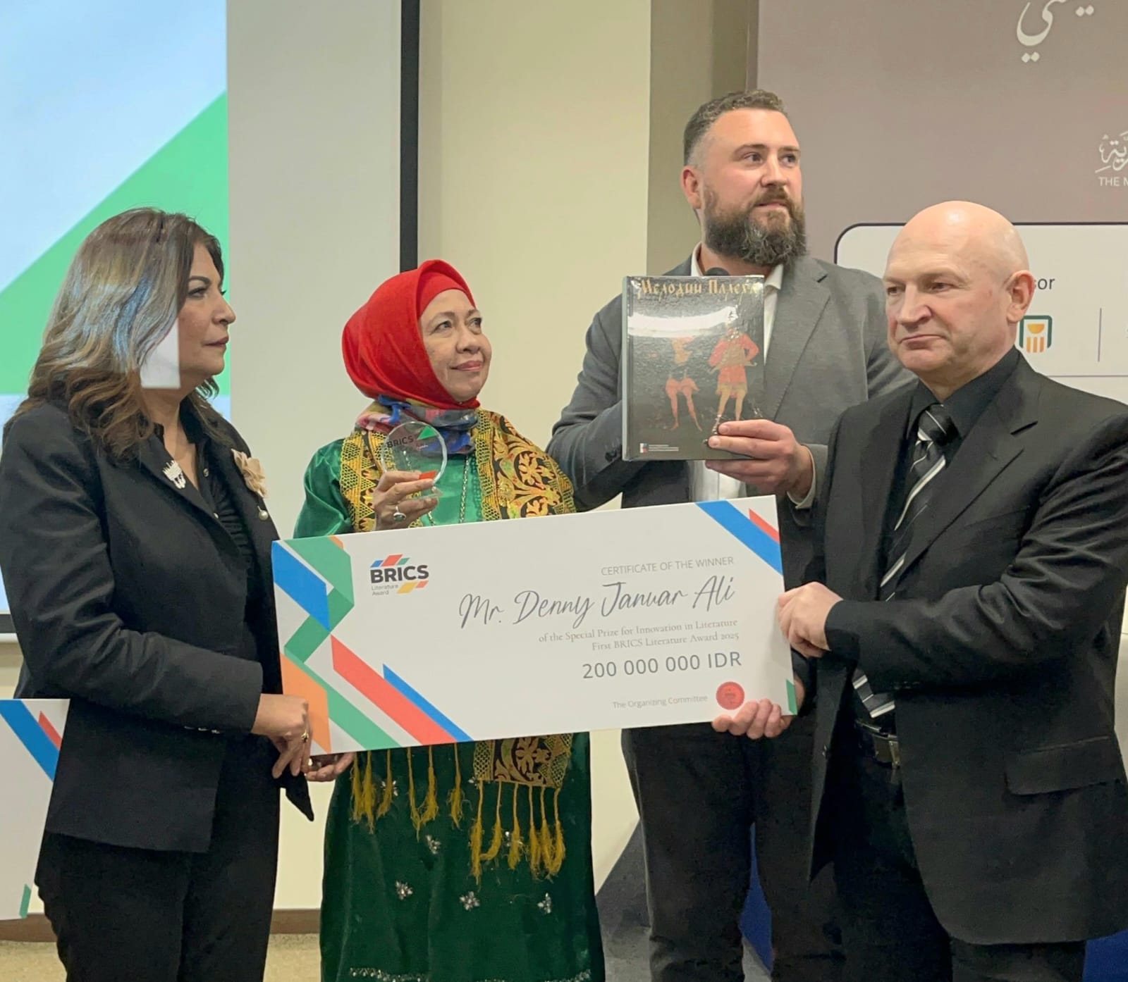 Penulis Salwa Bakr dan Denny JA Terima Penghargaan Sastra BRICS Pertama, Hadiah Rp 200 Juta