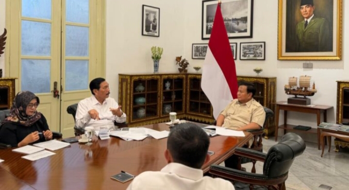 Presiden Republik Indonesia Prabowo Subianto menerima Ketua Dewan Ekonomi Nasional (DEN), Luhut Binsar Pandjaitan, di Istana Merdeka, Jakarta, pada 3 Desember 2025, untuk membahas arah kebijakan ekonomi nasional di tengah dinamika global.