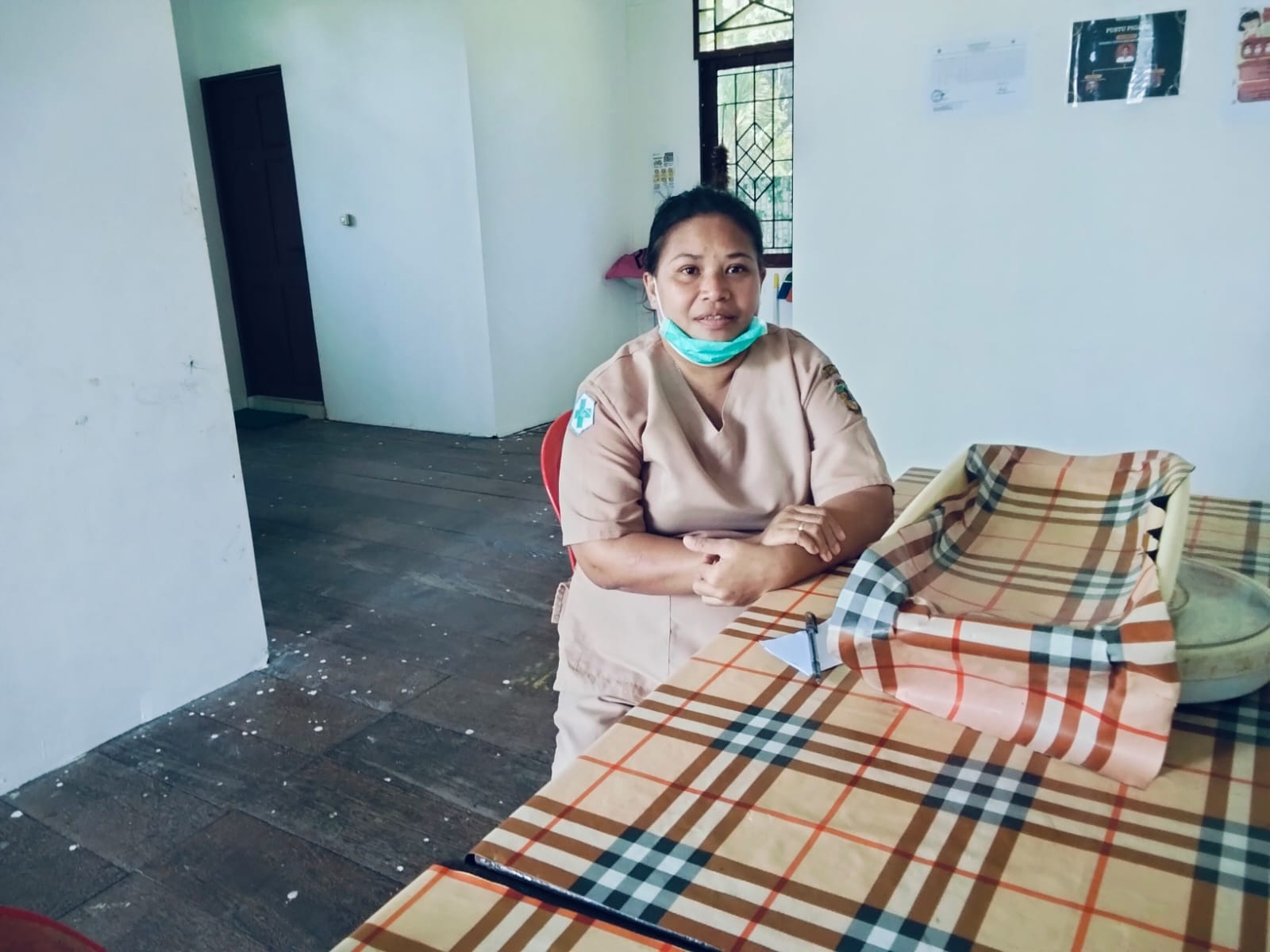 Kepala Pustu Pigapu, Ibu Marisa Matakena saat ditemui di Pustu, Selasa (3/3/2026). Katanya, keluhan warga yang datang ke Pustu seperti batu pilek, badan sakit-sakit, dan luka-luka saat mereka pulang mencari dari pantai.