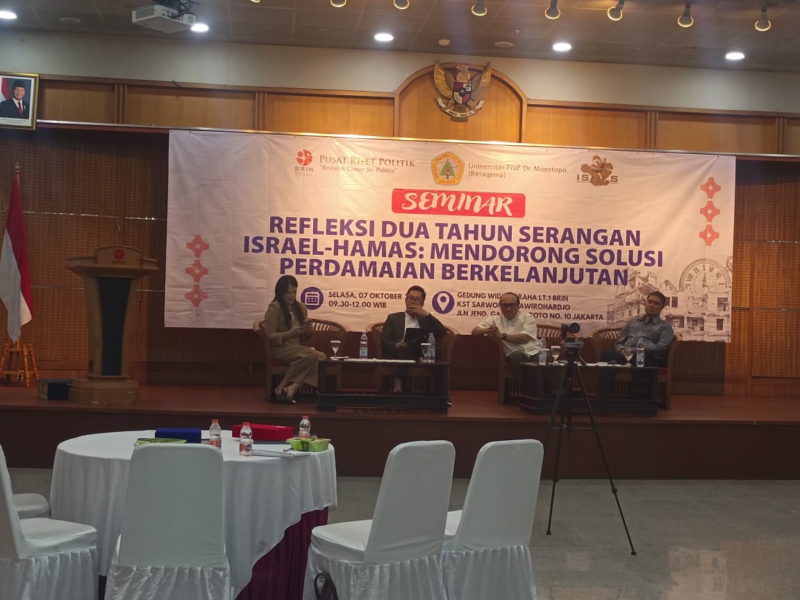 Hal ini disampaikan oleh dosen Magister Ilmu Politik, Fakultas Ilmu Sosial dan Ilmu Politik, Universitas Muhammadiyah Jakarta (UMJ), Dr. Asep Setiawan, saat menjadi salah satu pemateri di seminar bertajuk “Refleksi Dua Tahun Serangan Israel-Hamas: Membangun Solusi Perdamaian Berkelanjutan” di Pusat Riset Politik, Badan Riset dan Inovasi Nasional (BRIN), Jakarta, pada Selasa (7/10).