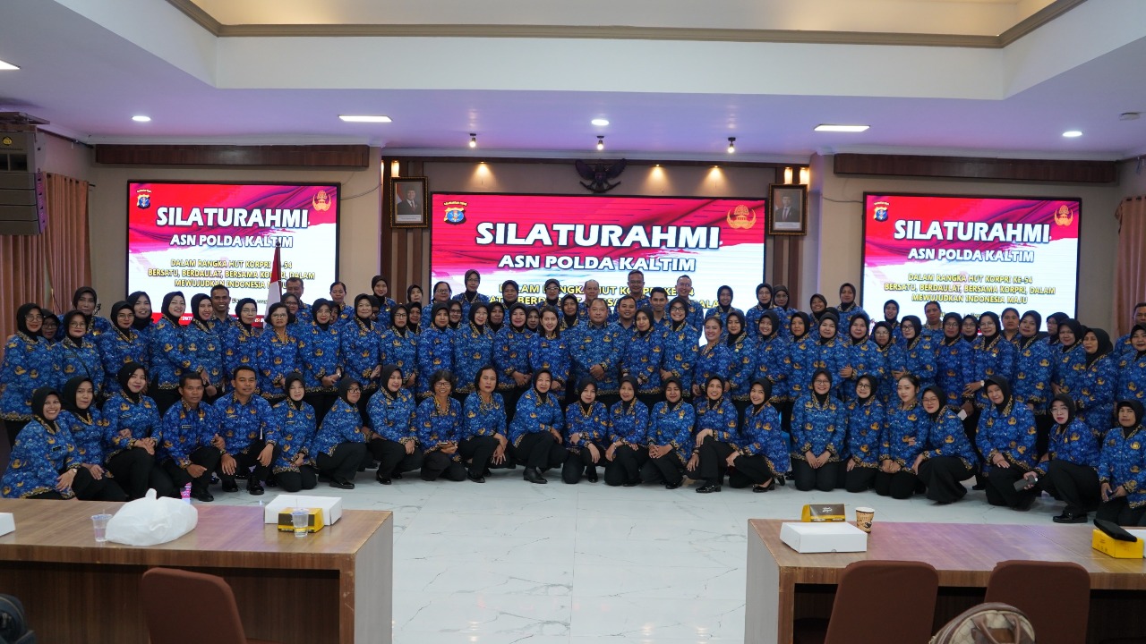 BALIKPAPAN — Dalam rangka memperingati Hari Ulang Tahun Korps Pegawai Republik Indonesia (KORPRI) ke-54, Aparatur Sipil Negara (ASN) Polda Kalimantan Timur melaksanakan kegiatan silaturahmi yang dipusatkan di Gedung Mahakam Polda Kaltim pada Rabu (04/12/2025) mulai pukul 08.00 WITA hingga selesai.