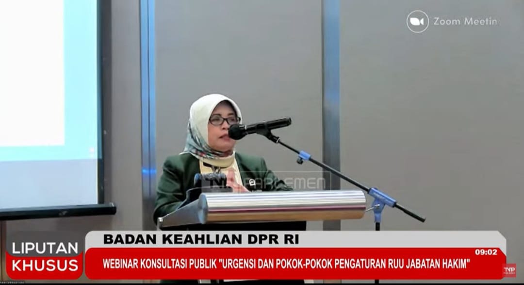 Rabu, 16 Jul 2025, Badan Keahlian (BK) DPR RI menggelar Webinar Konsultasi Publik – Urgensi dan Pokok-Pokok Pengaturan RUU Jabatan Hakim pada Rabu 16 Juli 2025. Dalam kesempatan tersebut, turut hadir sejumlah narasumber yaitu Prof. Dr. Yanto (Hakim Agung MA RI), M. Taufiq HZ (Anggota Komisi Yudisial RI), Prof. Dr. Basuki Rekso Wibowo (Guru Besar Universitas Nasional), dan Prof. Harkristuti Harkrisnowo (Guru Besar Fakultas Hukum Universitas Indonesia).