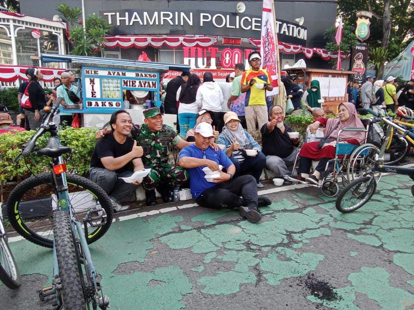 Selain itu, puluhan rombong kuliner rakyat juga hadir menyajikan aneka makanan khas nusantara, mulai dari bakso, mie ayam, ketoprak, gado-gado, hingga nasi goreng, yang tidak hanya menghidupkan suasana CFD tetapi juga mempererat nuansa kebersamaan.
