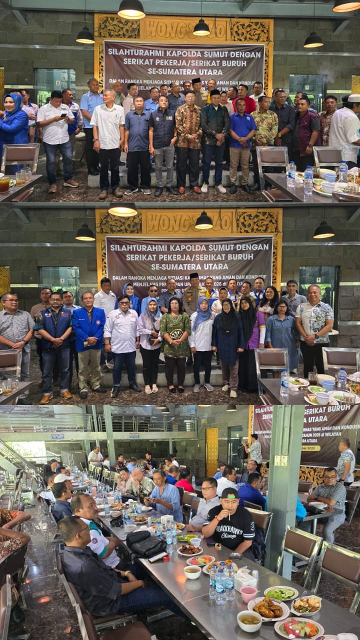 “Silaturahmi ini digagas untuk menjaga situasi Kamtibmas yang aman dan kondusif setelah penetapan UMP di Sumut. Setelah UMP Sumut ditetapkan menjadi 7,9 persen ini jadi momentum yang baik dalam menjaga situasi Kamtibmas di Sumut,”jelasnya.