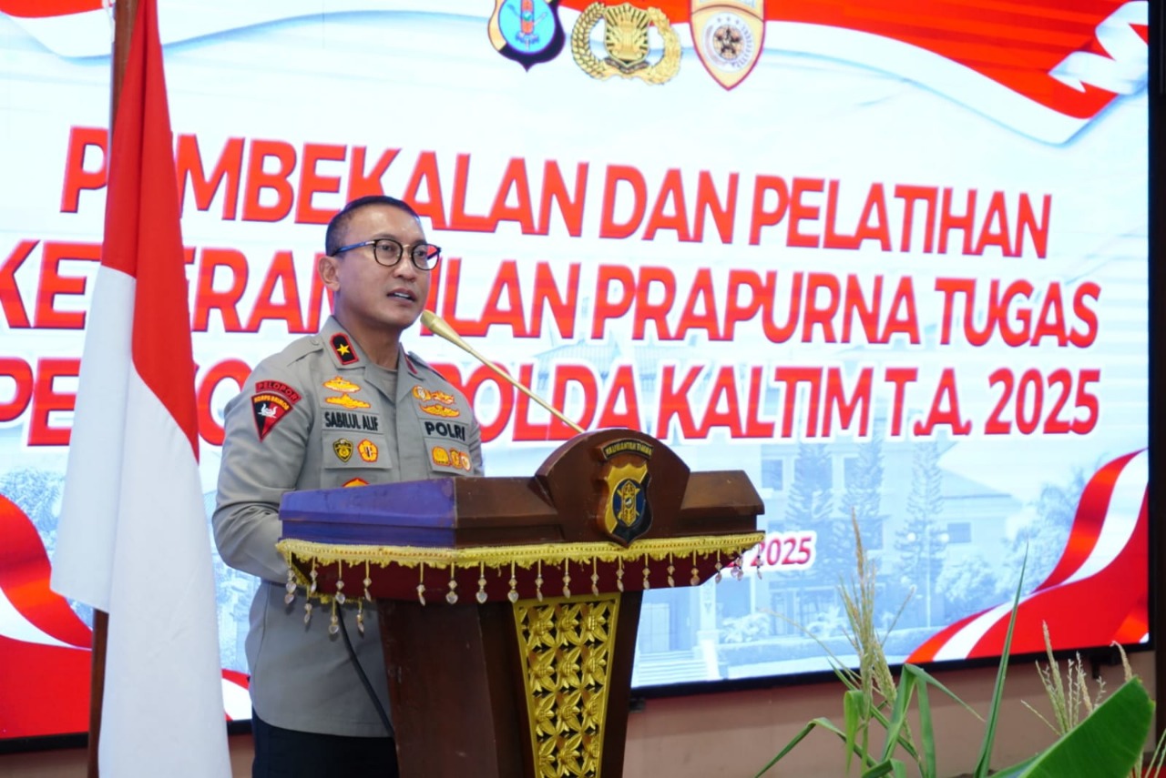 BALIKPAPAN – Wakapolda Kalimantan Timur Brigjen Pol Dr. H. M. Sabilul Alif, S.H., S.I.K., M.Si.,secara resmi membuka kegiatan Pembekalan dan Pelatihan Keterampilan (Latram) Prapurna Tugas Personel Polda Kaltim Tahun Anggaran 2025, yang digelar di Gedung Mahakam Mapolda Kaltim, Kamis (31/7/2025).
