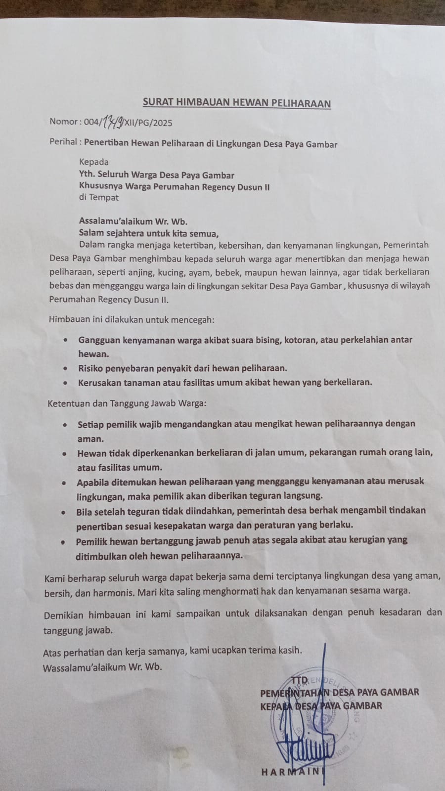 Hingga berita ini diturunkan, pihak desa belum memberikan keterangan resmi mengenai latar belakang, legalitas, maupun rencana tindak lanjut atas imbauan tersebut.***